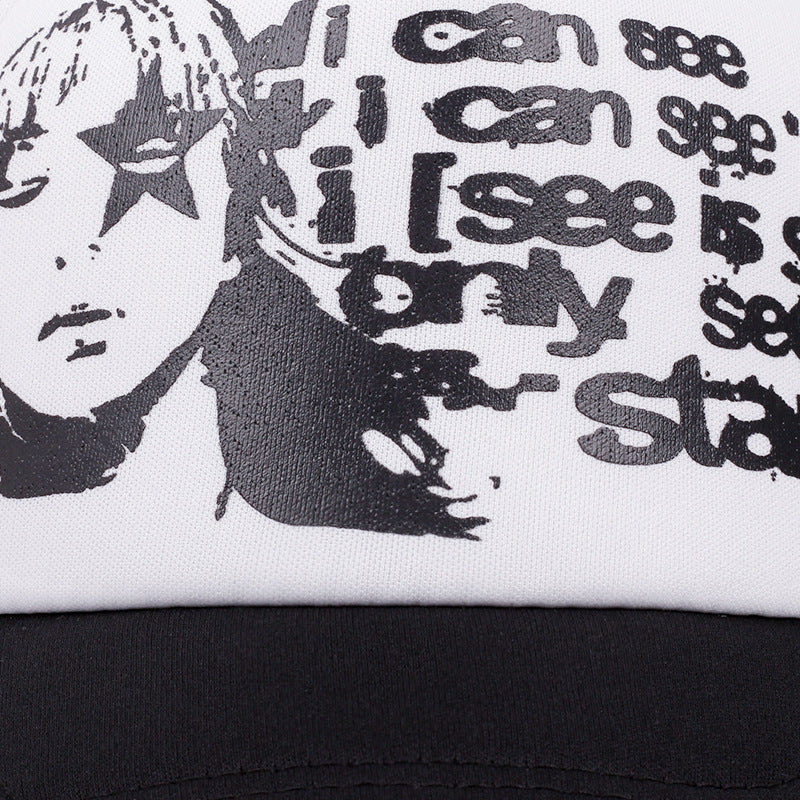 グラフィックデザインがアクセントのメッシュキャップ。通気性抜群で快適さもバッチリ、遊び心ある柄がコーデのポイントに。アウトドアや普段使いにぴったりな軽やかなアイテムです!