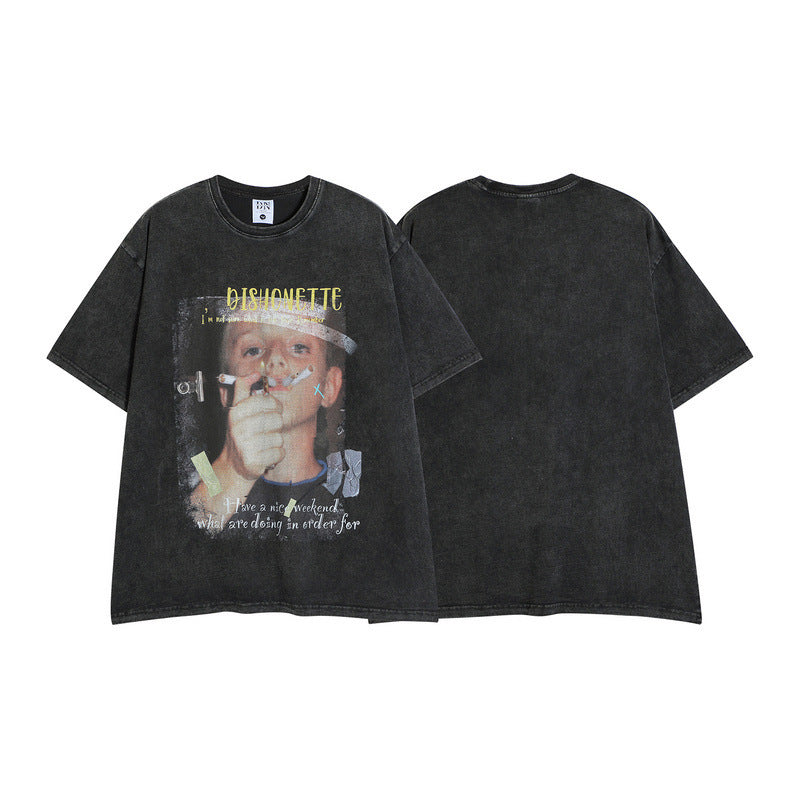 ヴィンテージスタイルの「Smoking Boy」Tシャツは、レトロな雰囲気とユニークなデザインが特徴です。遊び心あふれるグラフィックがコーディネートに個性をプラスし、カジュアルなスタイルにぴったりの一枚です。