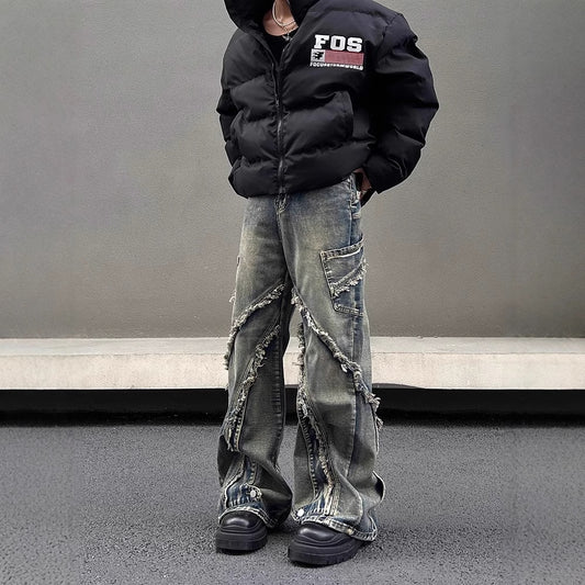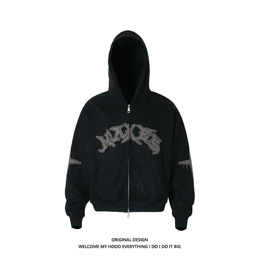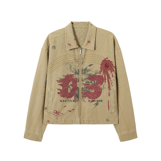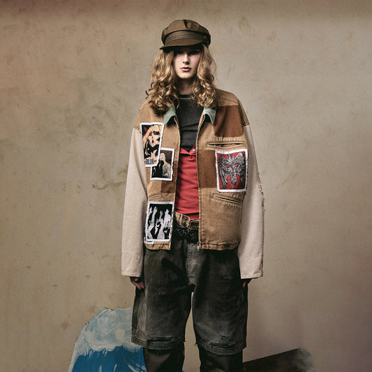 アートパッチワークジャケット|ブラック×レッド 高品質ストリート系ジップアップ メンズ レディース ユニセックス
