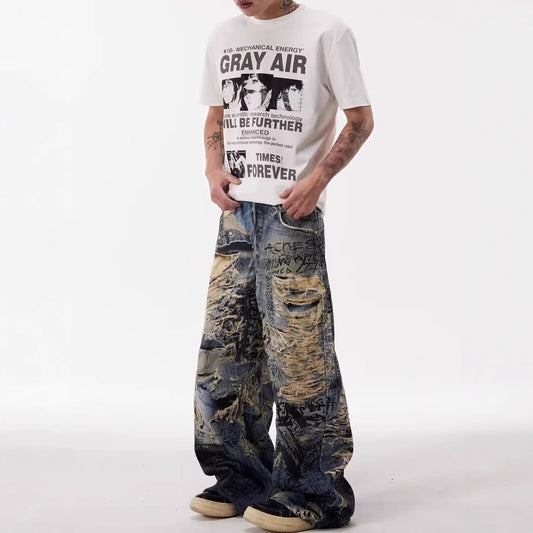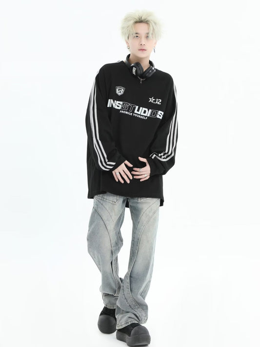 ビンテージ加工 フォトグラフィックプリント ロンT|ストリート系ブラックロングスリーブTシャツ メンズ レディース